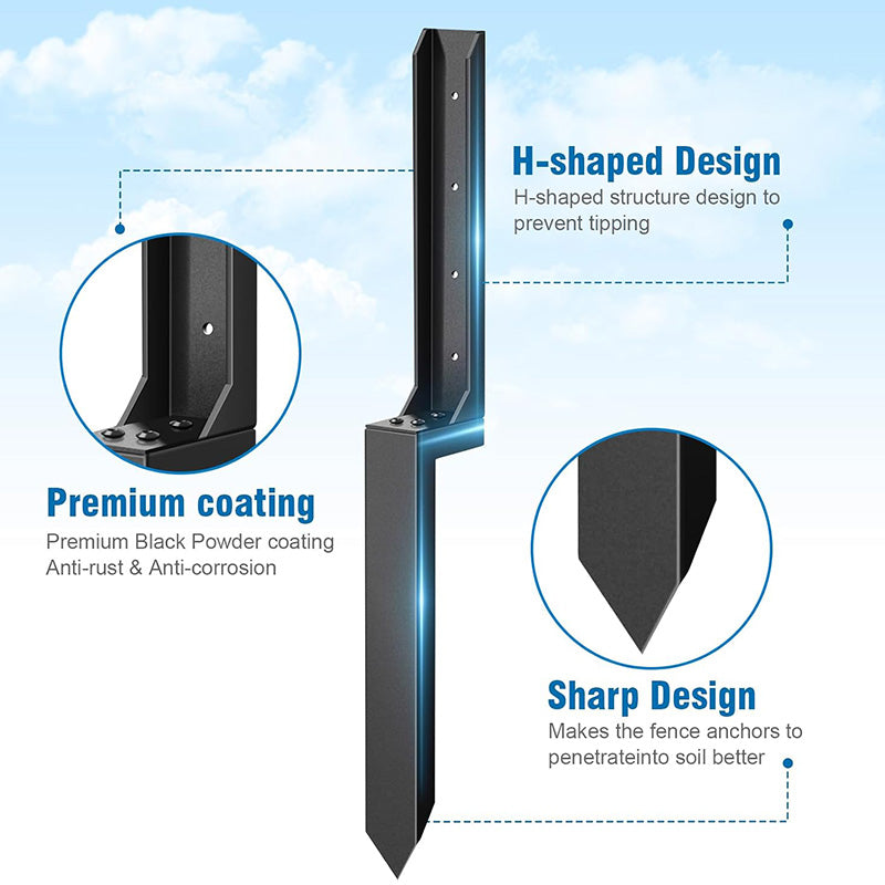 H-shaped design: The innovative H-shaped design offers superior strength and stability compared to traditional I-shaped designs. By evenly distributing vertical forces, it ensures a balanced and secure support structure. This design effectively repairs and stabilizes damaged or tilted fence posts, providing a reliable and long-lasting solution for a sturdy and secure fence.
